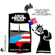 - Esta agencia de la especulación financiera estadounidense quiere condenar a los puertorriqueños a décadas de precariedad, de destrucción de protecciones mínimas a las trabajadoras y trabajadores boricuas, al deteriorar las condiciones de pobreza que encara nuestro pueblo. Eso es lo que el Plan de Ajuste Fiscal prescribe para nuestra gente.