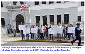 Mientras la Federación de Maestros, Educamos, UNETE, nosotros y la gente seria de este país la denunciamos por lo que era, una buscona, había gente que estuvieron dispuestos a respaldar incondicionalmente. Ahí estuvo la prensa colonial, con personajes como Jay Fonseca quien se iba a comer pizza con Keleher y hacerle promoción, WKAQ TV, WAPATV, El Nuevo Día, todos se prestaron para defenderla y apoyar su política criminal contra el Departamento de Educación y el pueblo puertorriqueño. En Naranjito, nuestro pueblo, la cargó el alcalde Orlando Ortiz Chévere, llevandola el primer día de clase junto al vulgar chatero de Ricky Rosselló, a la Esc. Mercedes Rosado.