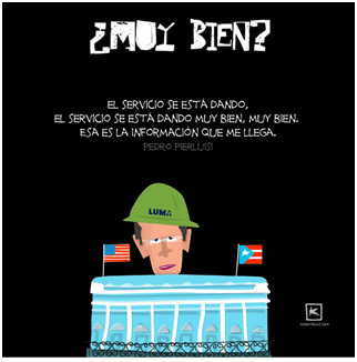c) ya Pierluisi, planteo el primer globo de prueba, la privatización será en diciembre, entonces ellos crean el caos, crean los problemas y quieren beneficiarse de lo creado por ellos mismos. Porque la idea es privatizar y perpetuar el encadenamiento a combustibles fósiles a nuestro pueblo. Entregar la generación a una subsidiaria de LUMA Energy. Es enriquecer a las empresas privadas, con menos servicios y más cara para el pueblo.