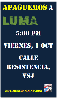 Apaguemos a LUMA movimientoninnegron / 30 Sep 2021 Descubre más desde Movimiento Ñin Negrón Suscríbete y recibe las últimas entradas en tu correo electrónico. Escribe tu correo electrónico… Suscribirse Comparte esto: Haz clic para compartir en X (Se abre en una ventana nueva) X Haz clic para compartir en Facebook (Se abre en una ventana nueva) Facebook Me gusta Cargando...
