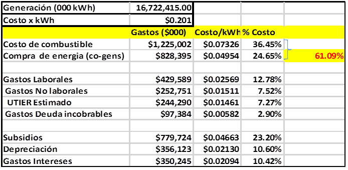 “La estructura de la tarifa nos muestra que sólo 2.6 centavos de los 20 centavos de tarifa proviene del capital humano. Apenas 1.5 centavos de los empleados bajo la UTIER. Sin embargo, 61% (12.3 centavos) proviene de la compra de combustible y de energía. “