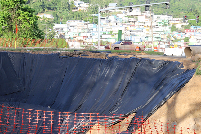 El hoyo del desvió, hace dos meses ocurrió un hundimiento en el desvió de Naranjito, que cerró tres carriles del desvió en la entrada del hospital. Las primeras semanas se vio bastante movimiento, excavadoras, camiones, gente, ya llevamos varias semanas y nada. El hoyo ahí, llenándose de agua, y un solo carril para los carros.