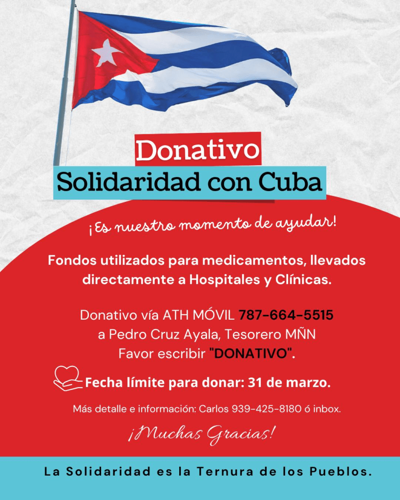 DONATIVO: Solidaridad Cuba movimientoninnegron / hace 1 semana 18 Mar 2026 Descubre más desde Movimiento Ñin Negrón Suscríbete y recibe las últimas entradas en tu correo electrónico. Escribe tu correo electrónico… Suscribirse Comparte esto: Compartir en X (Se abre en una ventana nueva) X Comparte en Facebook (Se abre en una ventana nueva) Facebook Me gusta Cargando...